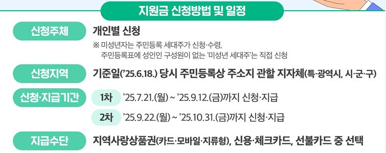 1차: 2025년 7월 21일(월) ~ 9월 12일(금)까지 신청/지급