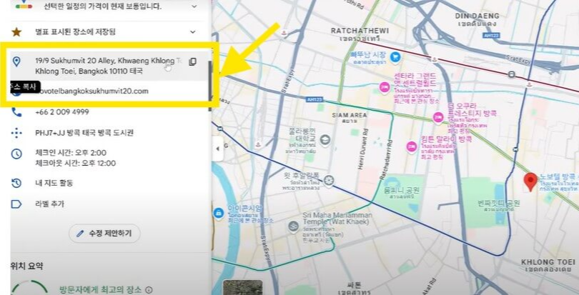 → 숙소 정보: 도시명, 호텔명, 상세 주소(구글 지도에서 호텔 주소를 찾아서 입력)