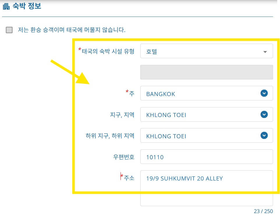 → 도착 날짜는 태국도착일로, 출발 3일 전부터 당일까지만 작성 가능
