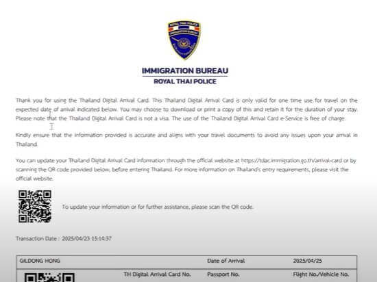 2025년 5월 1일부터 태국 입국 시 종이 입국카드(ED카드)가 폐지되고, 디지털 입국카드인 TDAC (Thailand Digital Arrival Card)가 전면 도입되었습니다.